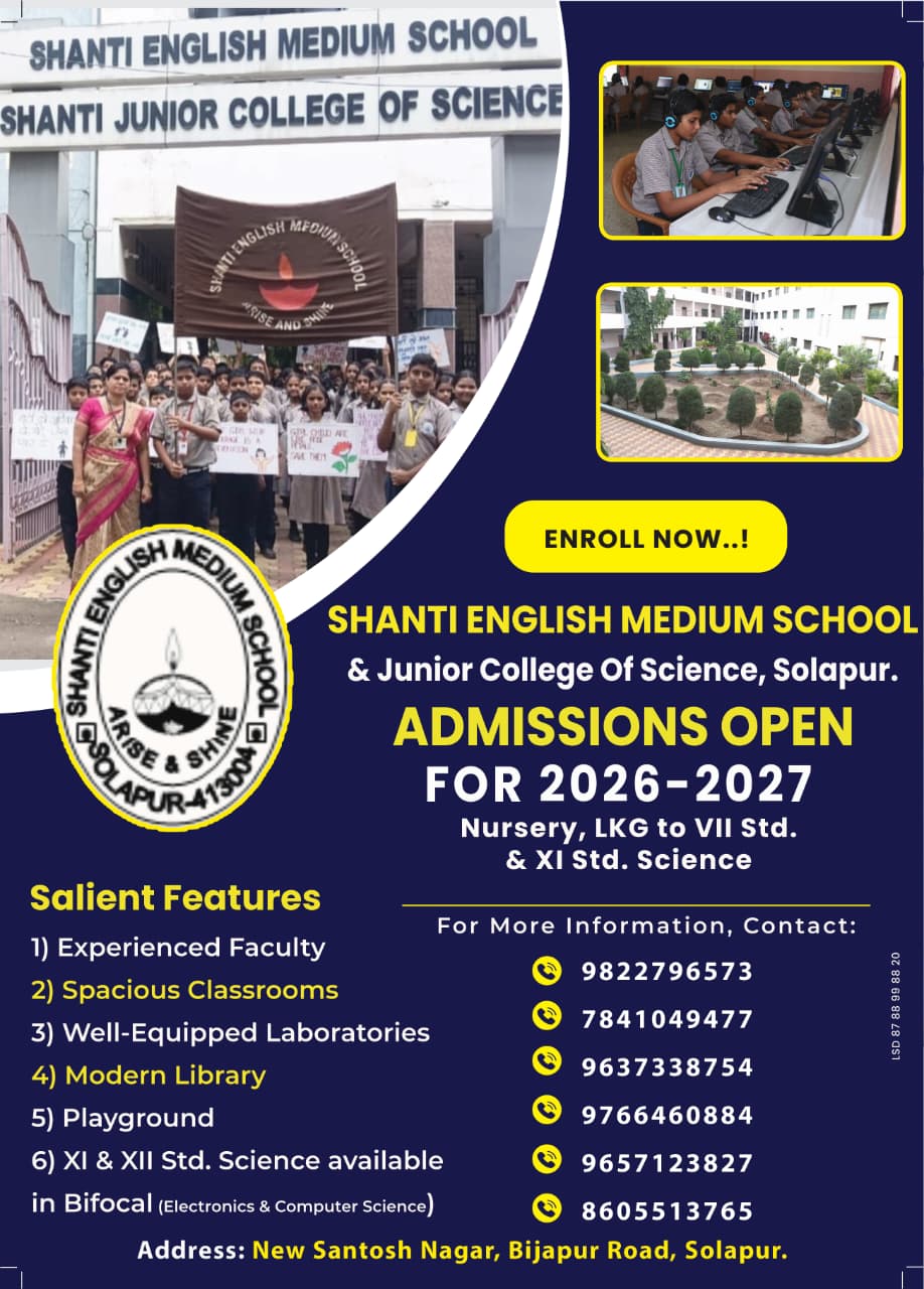New Santosh Nagar, Bijapur Road, Solapur-413004 Ph: 0217-2301599